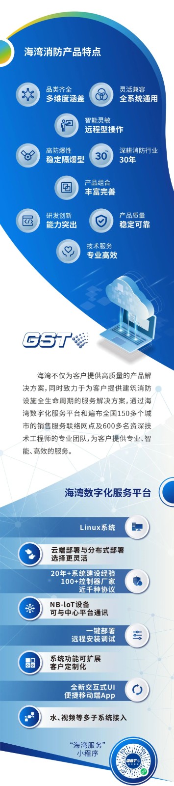 海灣不僅為客戶提供高質(zhì)量的產(chǎn)品解決方案,同時(shí)致力于為客戶提供建筑消防設(shè)施全生命周期的服務(wù)解決方案,通過海灣數(shù)字化服務(wù)平臺(tái)和遍布全國150多個(gè)城市的銷售服務(wù)聯(lián)絡(luò)網(wǎng)點(diǎn)及600多名 技術(shù)工程師的專業(yè)團(tuán)隊(duì),為客戶提供專業(yè)、智能、高效的服務(wù)。